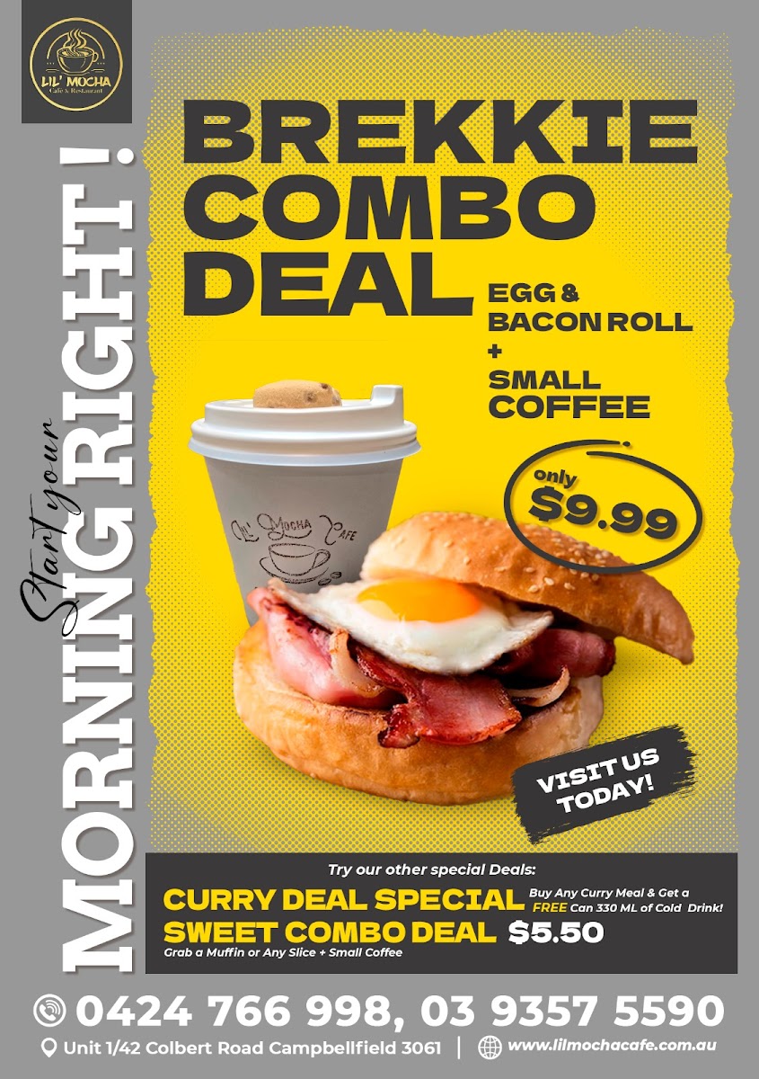 Welcome to Lil' Mocha Cafe & Restaurant, a delightful haven in Campbellfield where culinary creativity meets community warmth. The menu showcases an enticing range of offerings that cater to diverse palates. Start with a hot cuppa—choose from expertly crafted cappuccinos, velvety lattes, or rich espressos, all priced at just A$4.50. For something sweeter, indulge in their mocha or luscious hot chocolate.