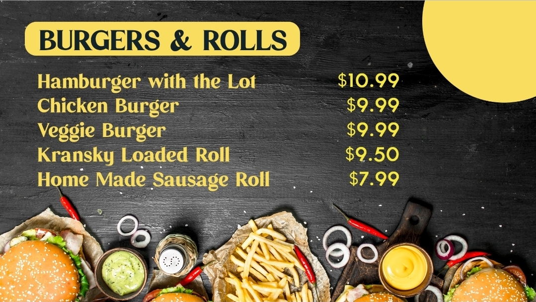 Breakfast, Burgers,Rolls, sandwich,Greek Souvlaki, Middle Eastern Eats, taste of India ,soups,